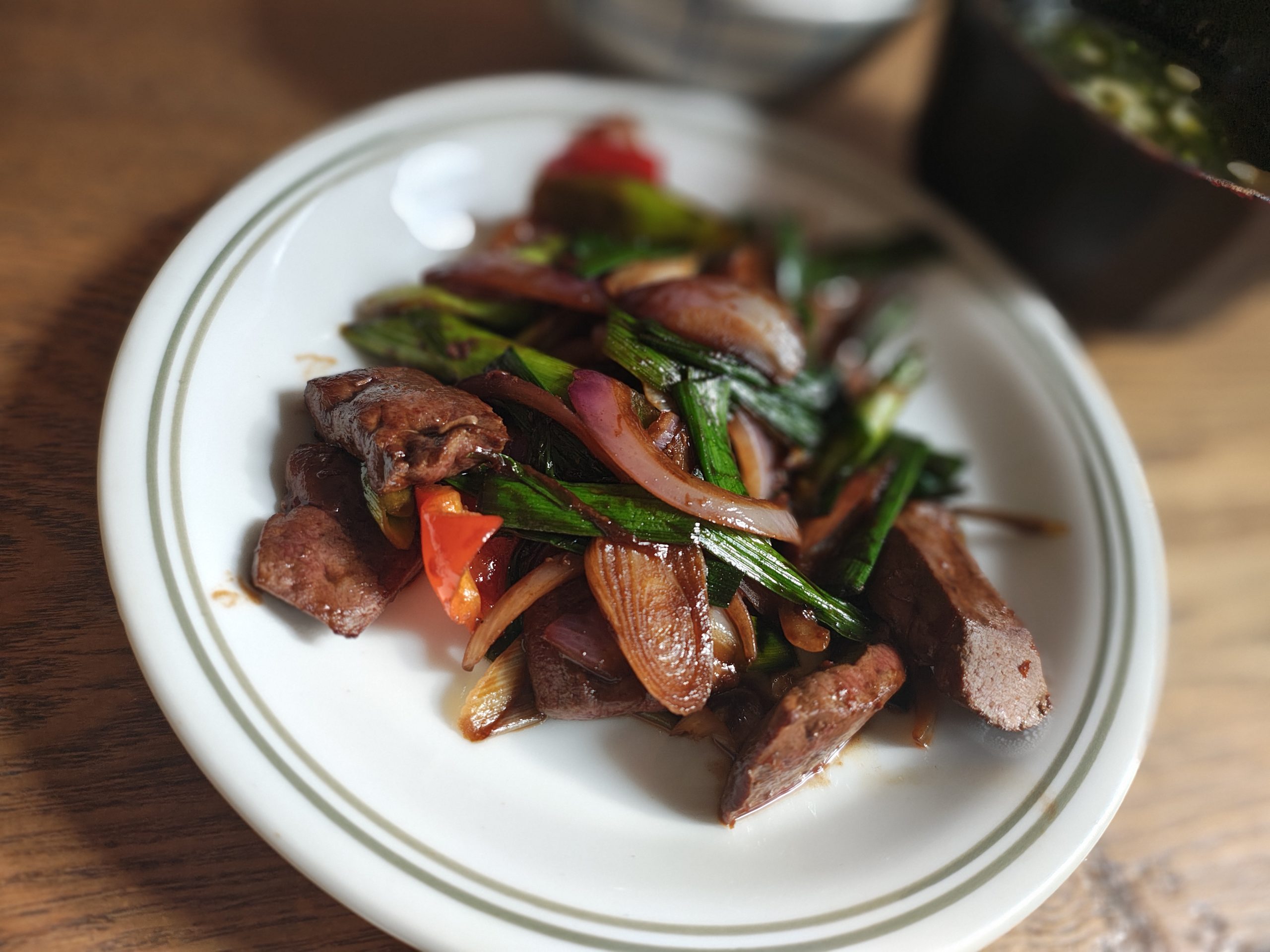 短角牛レバーと葉ニンニクの甘辛炒め